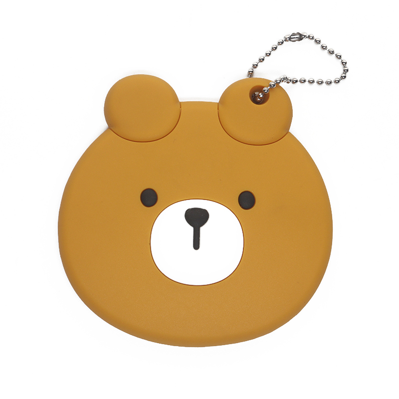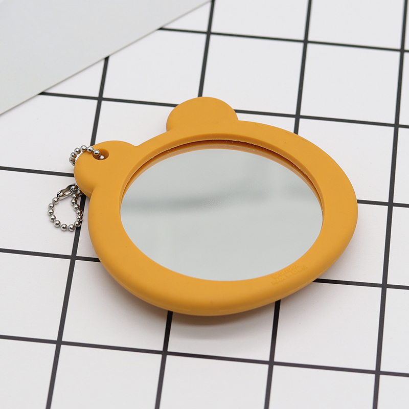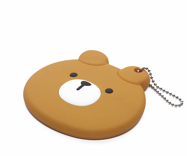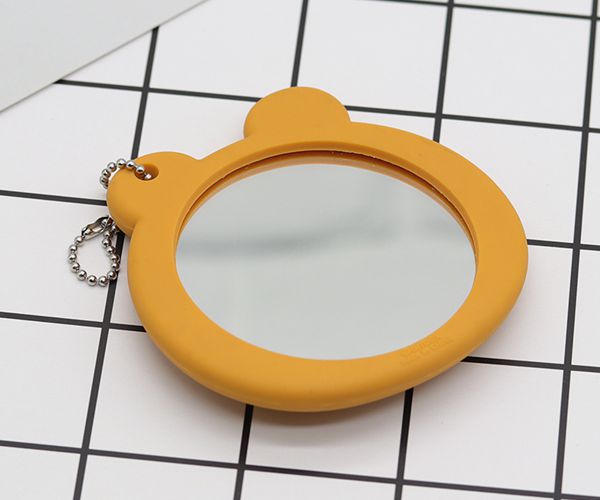 帝博硅膠保護套生產商面向各種生活用品提供護套批發和定做,這款便攜小鏡子保護套是一個卡通熊的造型,設計好看美觀。和鏡子貼合無縫隙,鏡面不松動,搭配有金屬吊環,可以掛在墻上方便使用。