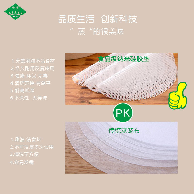 食品級納米硅膠墊具有耐高溫耐低溫,不開裂,防腐蝕性,安全,柔軟,彈性好,耐扭結而不變形,是一種新型環保材料,通過食品衛生部門檢查,有相關安檢證書,放心使用。表面涂層采用進口食品級硅膠(耐高低溫-40度—230度),基材使用的是高品質滌綸纖維布。