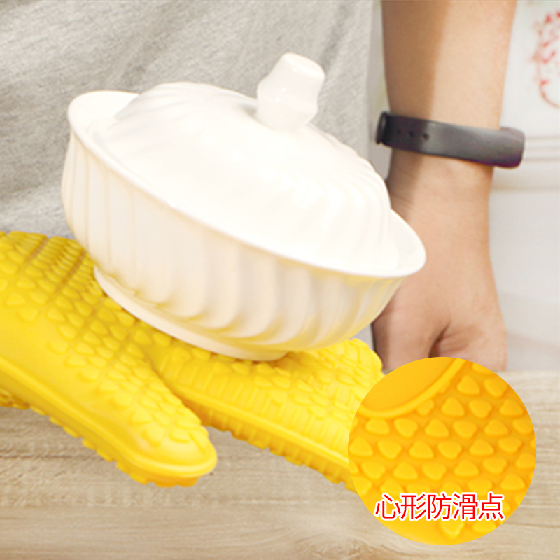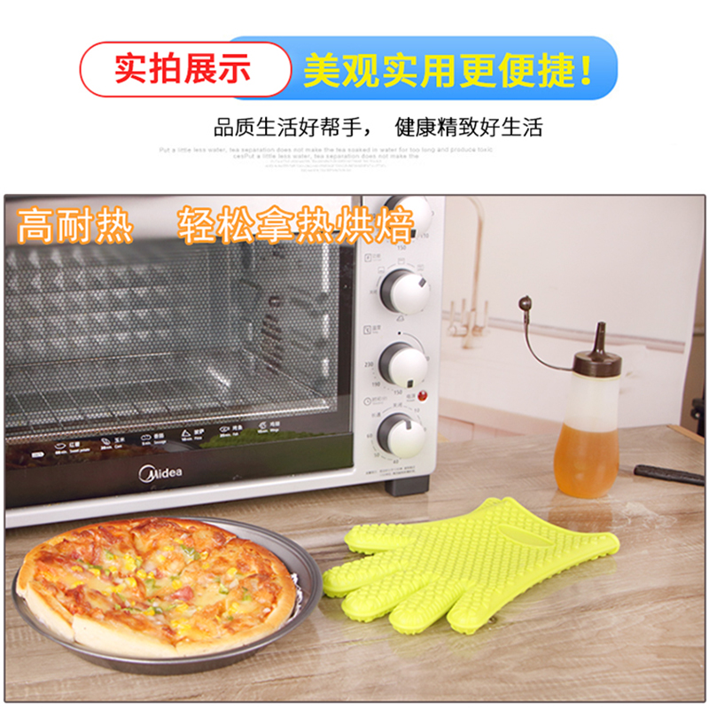 采用防滑凸點設計,安全不打滑,防水硅膠,可入熱水取物,加厚隔熱,五指設計防滑更實用佩戴舒適,操作更方便靈活,使用更加方便,可用于烤箱燒烤、蒸箱、冰箱、微波爐、,手套紋路凹凸清晰更加的增大了手套的防滑強度,硅膠材質增加了手套的清洗能力,可反復沖洗循環使用,如果有油污,使用洗潔精清洗即可除去。本產品采用環保級橡膠制品,健康環保,柔軟不易變形,耐拉扯。是一款家庭必備用品。