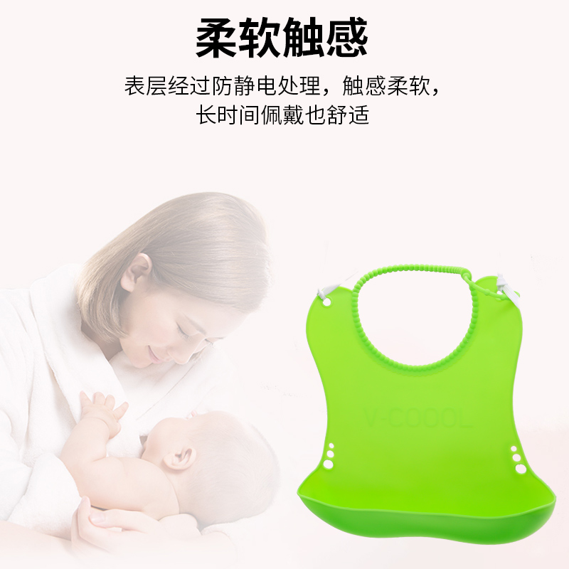 安全的硅膠材質(zhì), 讓您的寶寶愛(ài)上吃飯,一抹即凈,輕巧便捷,柔軟無(wú)痕,可啃咬食品級(jí)硅膠,不用擔(dān)心飯兜材質(zhì)被寶寶啃咬會(huì)對(duì)寶寶產(chǎn)生身體健康,我們帝博拒絕PBA不利材質(zhì) ,讓寶寶健康安全的成長(zhǎng),家長(zhǎng)放心的材質(zhì)立體大飯兜口徑輕松兜住食物殘?jiān)瑡寢尭判摹9枘z材質(zhì)防水、防油、清潔簡(jiǎn)易,隨用隨清理,干凈衛(wèi)生,輕巧便捷,柔軟易卷,硅膠質(zhì)地柔軟而不失韌性,來(lái)回折疊不留折痕,外出便攜,一卷即走。