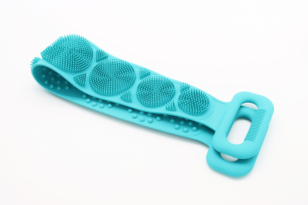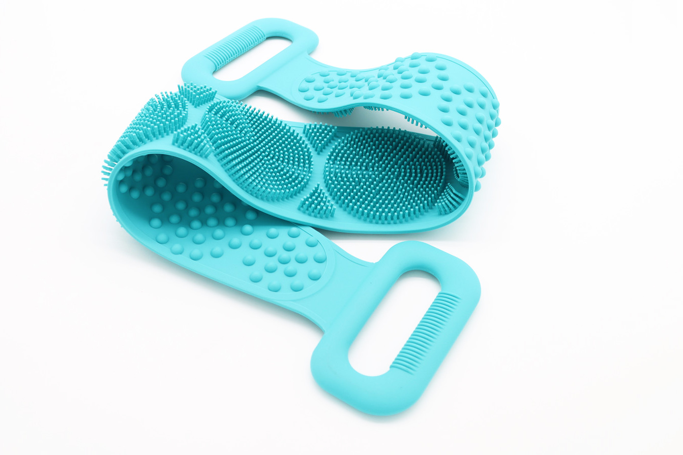 食品級硅膠沐浴巾,輕松清潔,換新肌膚活力,長條硅膠搓澡巾在家就能輕松做SPA,拉背輕松,雙面清潔雙面功能雙向選擇,刷毛面起泡搓泥,半球面按摩活絡經脈,沐浴更簡單,讓你在家就能輕松做SPA,柔軟舒適,起泡豐富,采用硅膠一體成型環保健康手握舒服,手柄條形阻尼輕松抓牢,近千條刷毛,深層清潔,多個區域刷毛粗細相當360度清潔每一寸肌膚,懸掛收納,節省空間,掛空設計方便收納速干。