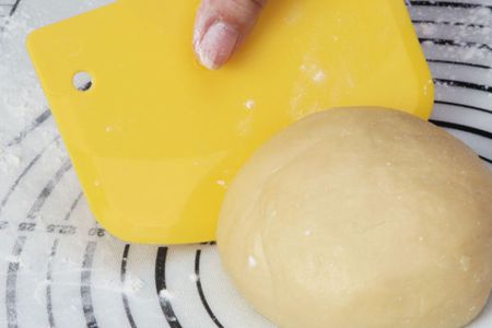 為省事,此時可使用硅膠刮刀,刮刀已刻上等距,刻度清晰可見。因此,在切面時,能方便地切出大小均勻、效率極高的面團。也許有人會問,硅膠刮刀以前是用來刮面的,那么它的硬度應該不高才對,怎么可以用來切面?實際上硅膠刮刀它是一種組件,當需要刮刀時,它的表面會吸附一塊內(nèi)置磁鐵的刮刀,當需要刮刀時,就會把刮刀的表面去掉,這樣就可以用不銹鋼的刮刀刮去表面。